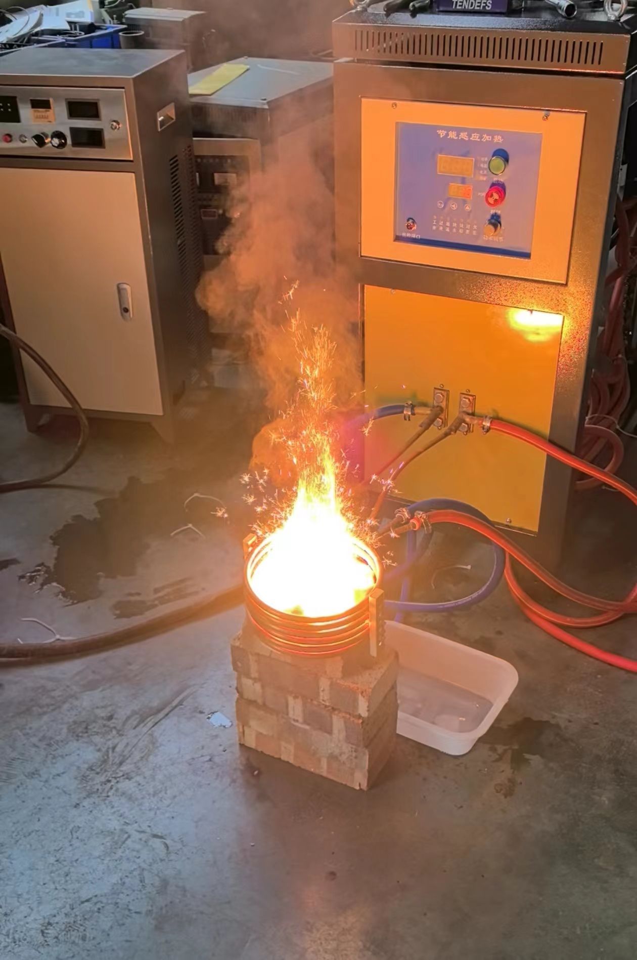 采用全數字芯片,由出色的軟件算法實現高效穩(wěn)定運行,采用動態(tài)電感識別技術,自動識別線圈參數,自動調整加熱狀態(tài),采用三種調制方法:調頻、調脈寬、動態(tài)頻率調制結合脈寬調制的雙調技術,設備生產過程水電隔離安全可靠。